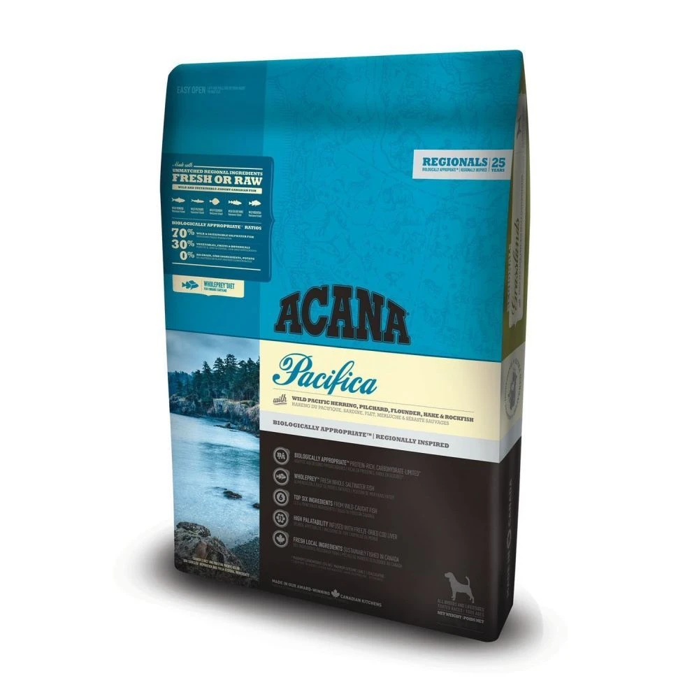 Reflecting the rich maritime harvest from Canadaรs cold and pristine Pacific waters, ACANA Pacifica is loaded with fresh and regional Canadian fish, wild and sustainably caught off North Vancouver Island.