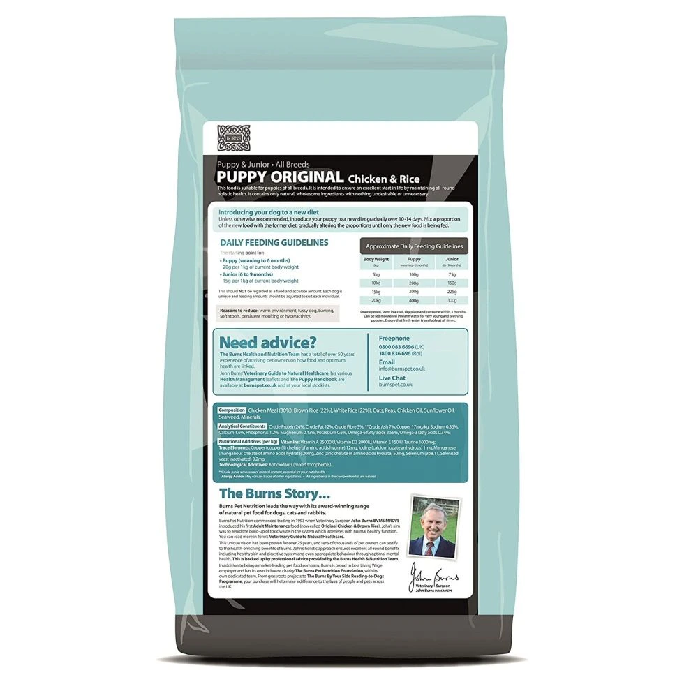 Burns 6kg Original Chicken & Rice Puppy Dog Food is a premium, balanced diet for growing puppies. Made with high-quality chicken and brown rice, it provides essential nutrients for optimal growth and development. It is free from artificial preservatives and is easily digestible, making it suitable for puppies with sensitive stomachs. Suitable for puppies from weaning to 12 months old.